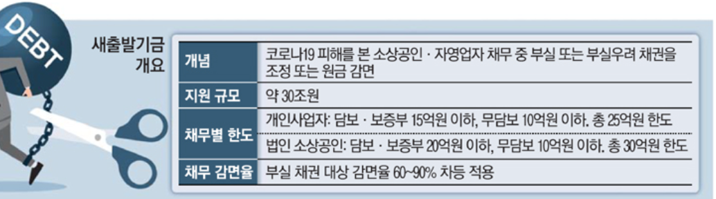 새출발기금은 경영 어려움을 겪는 소상공인과 자영업자의 채무 부담을 줄이고 경제적 재기를 돕기 위한 대표적인 채무조정 지원 제도입니다.