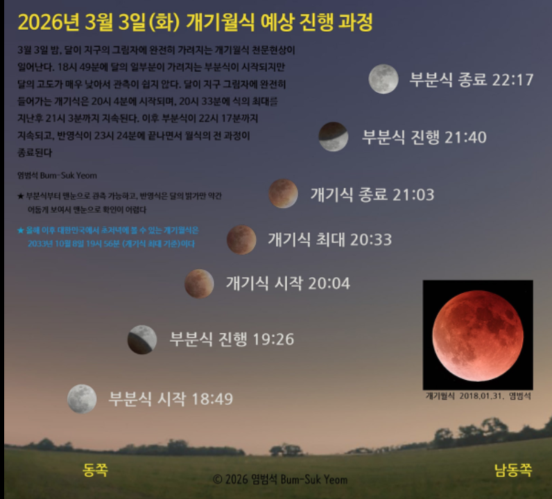 이번 정월대보름 개기월식은 저녁 시간대에 진행되어 비교적 관측하기 좋은 조건입니다.