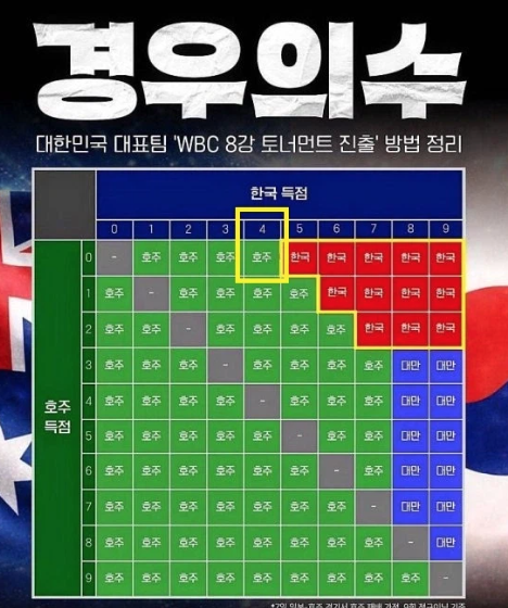 - 타 팀 맞대결 결과 중요 → 특히 일본·대만 경기 결과 확인 필요
