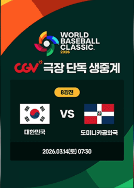 한국과 도미니카 공화국의 WBC 8강 경기는 3월 14일 오후 7시 30분에 열립니다.