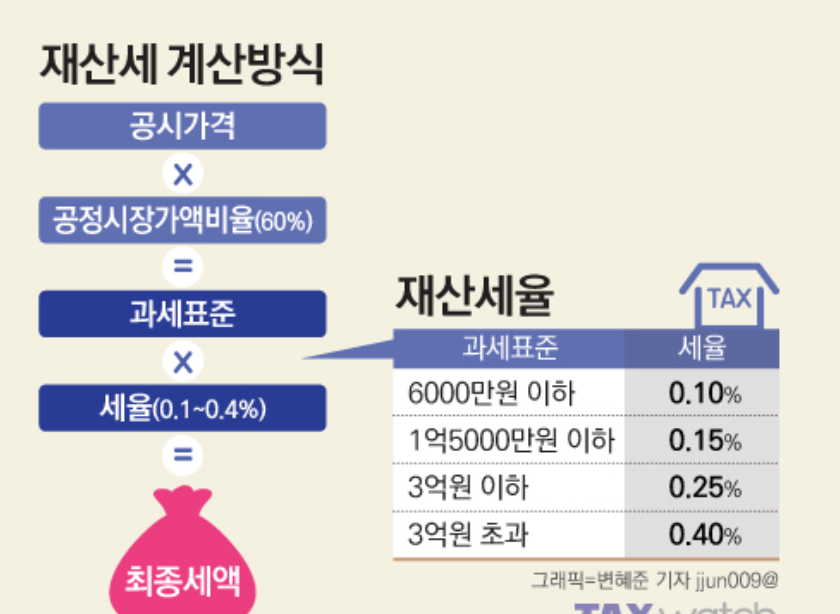 이 과세표준을 기준으로 구간별 세율이 적용되면서 최종 재산세 금액이 산출됩니다.