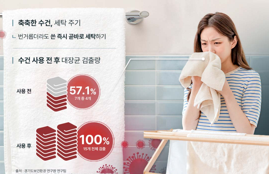 수건은 사용 후 바로 건조하는 것이 가장 중요합니다.