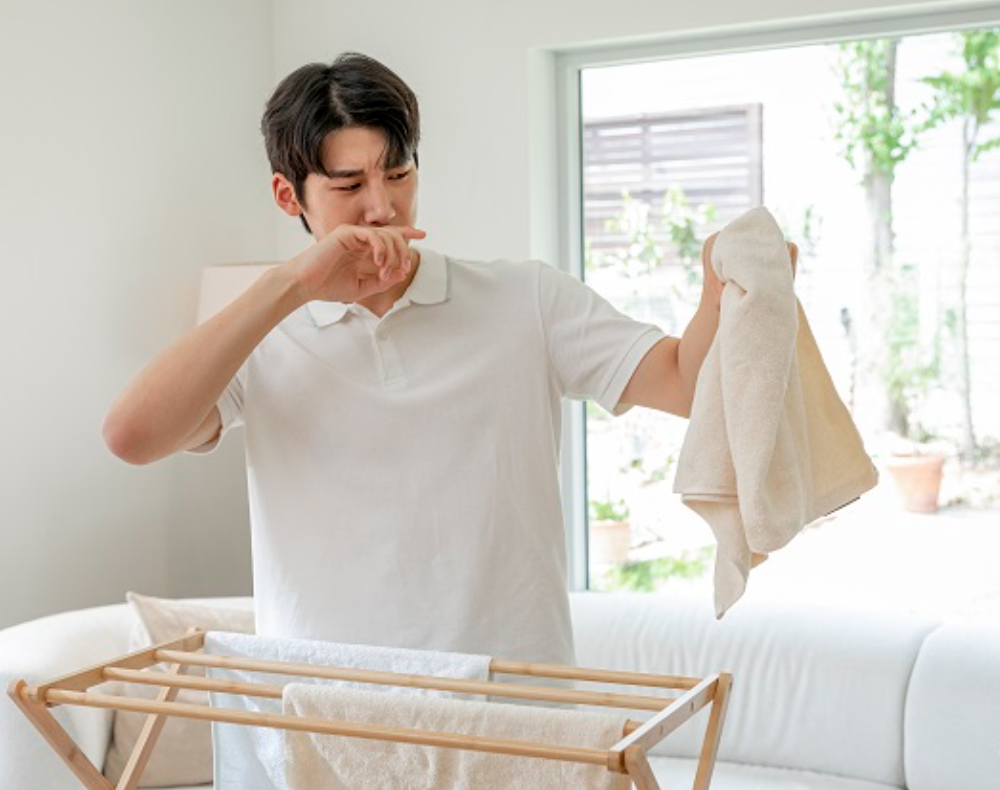 특히 욕실에 걸어둔 채로 습기가 남아 있으면 세균이 빠르게 번식하면서 특유의 꿉꿉한 냄새가 생깁니다.